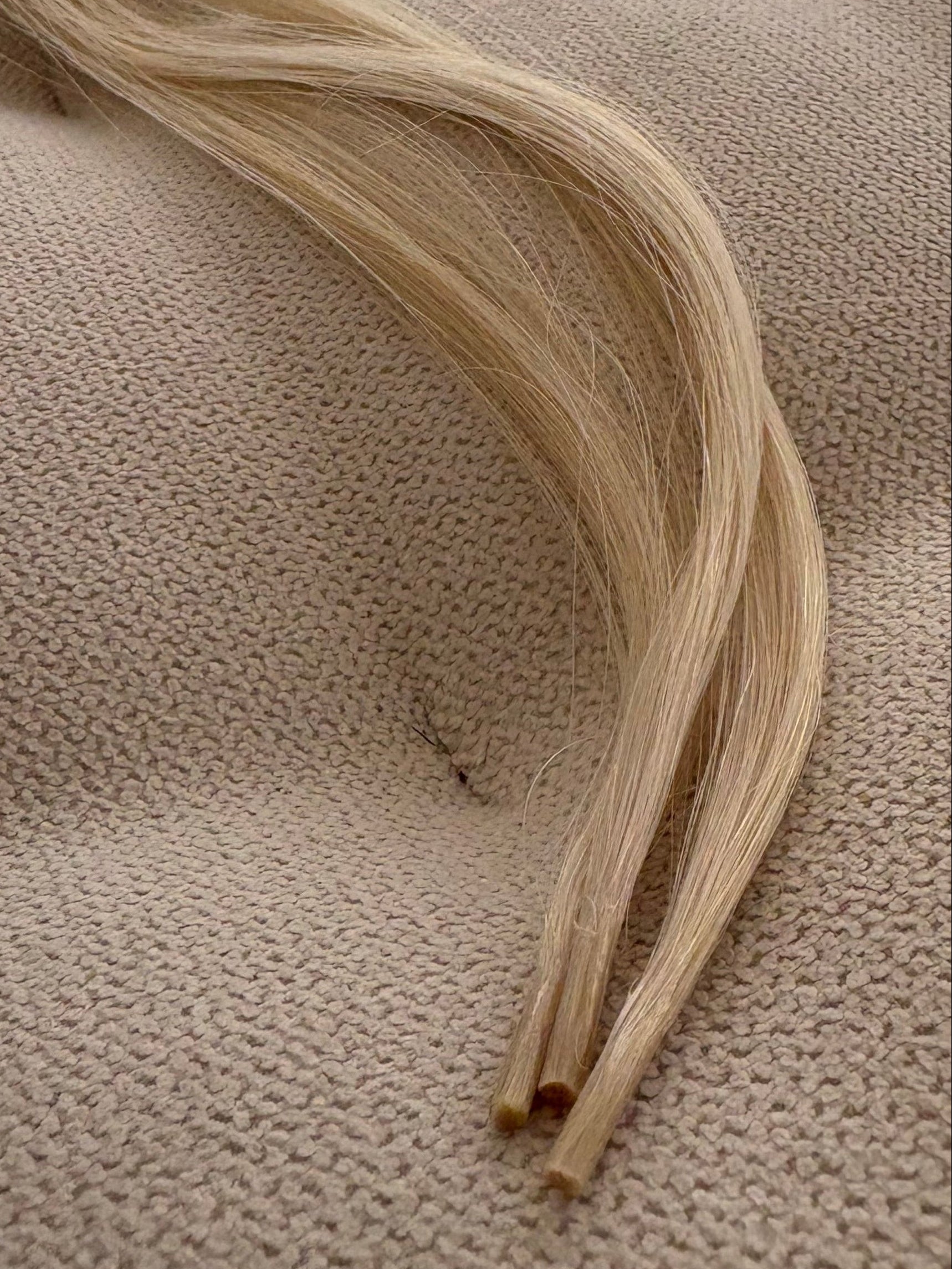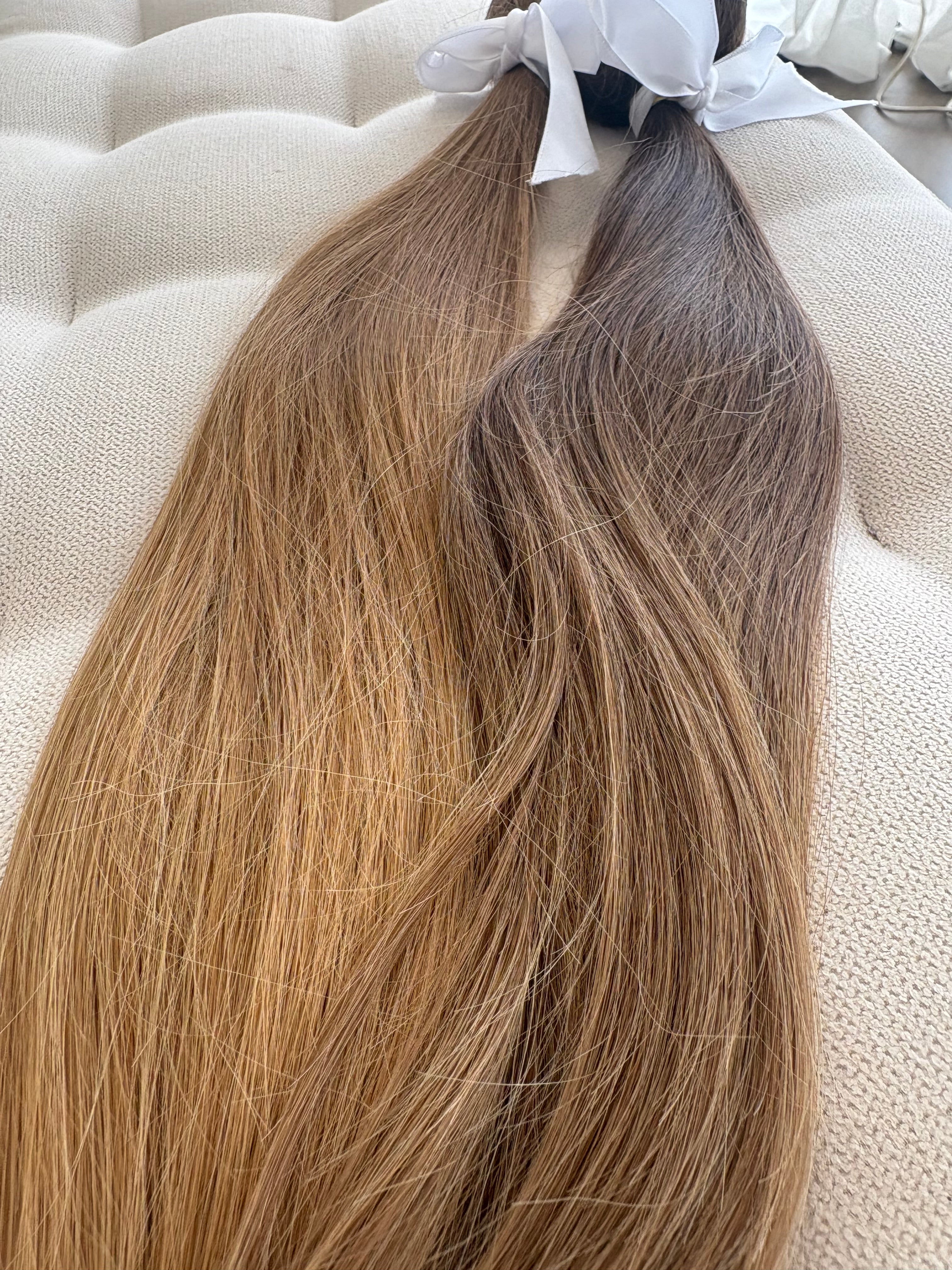 The hair has never been coloured or chemically treated in any way. It is natural hair that has been cut straight from the ponytail and then sent to our salon.