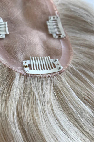 A Topper is a removable hair extension that sits over your natural part. Toppers are amazing for hair that is thinning from the top that is too sparse for hair extensions. Toppers can be worn on their own or with a removable extension piece to create the look of a wig without wearing one. They are also a great option if you are wanting a colour or look change without the commitment or if you are wanting to give your hair a rest from regular colouring.