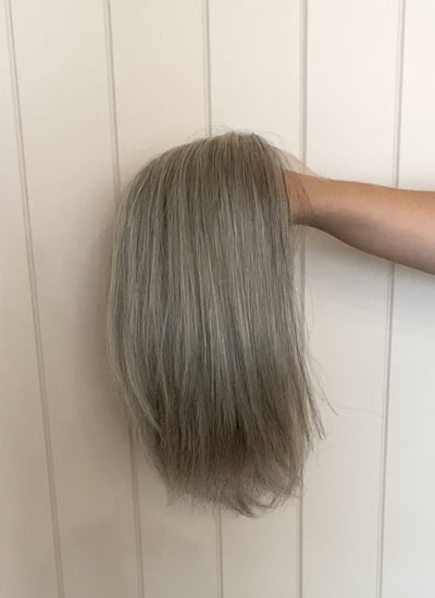 A beautiful natural salt and pepper grey. In hairdresser terms she would be approximately 50 - 75% grey. We do have other grey options available for pre order please reach out if this isn't the perfect grey for you.