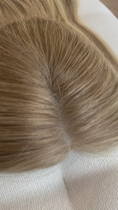 Our custom light density with an 8" x 8" cap, with a 4.5" x 4.5" hand tied lace parting section